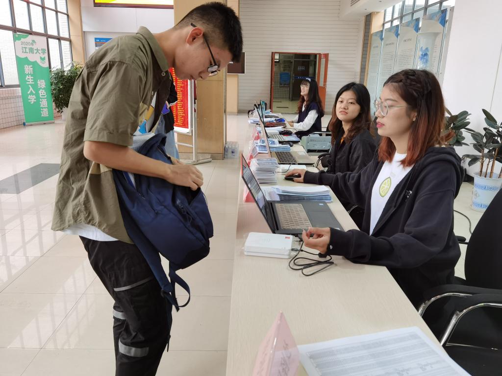 新生报到工作在机械学院大厅进行,分为报到、信息确认、绿色通道以及风采展示区。志愿者们热情引导,细心服务,确保每一环节均有志愿者在岗服务,以高度的责任心和积极的工作态度为新同学营造出安全、有序的环境,各环节有条不紊地进行。