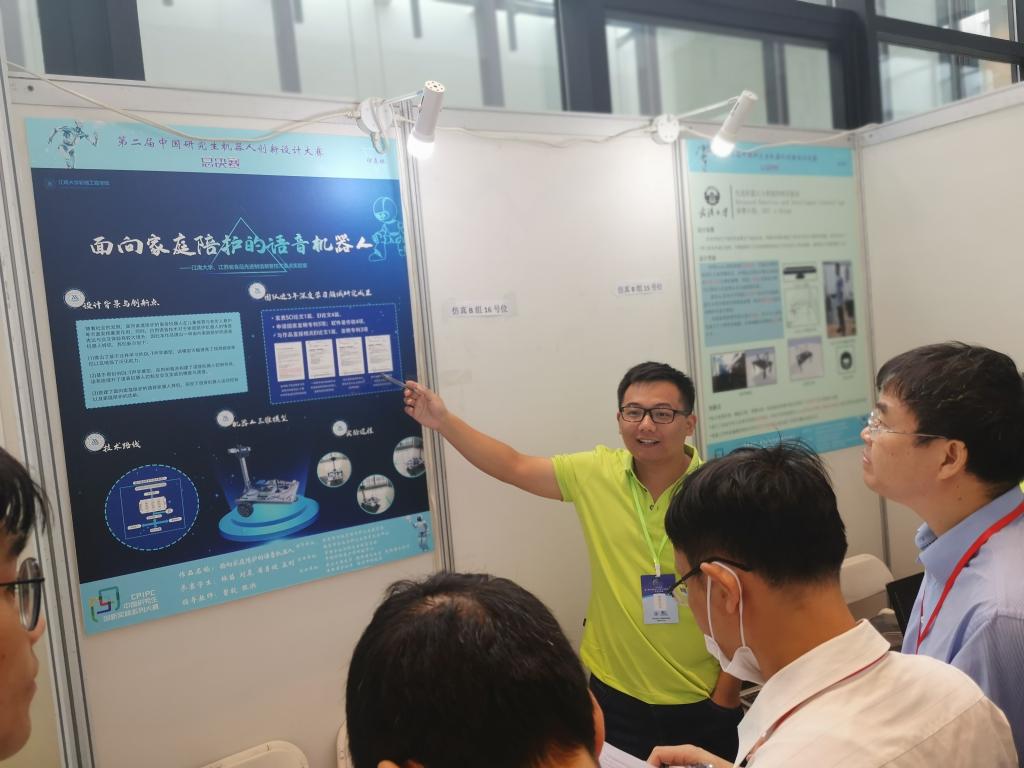 9月24-25日,第二届中国研究生机器人创新设计大赛全国总决赛在西安交通大学中国西部科技创新港举行。yl23455永利官网曹毅、张洪两位老师联合指导的“e江南”团队(队长:林苗,队员:刘晨、居勇健、孟刚)凭借“面向家庭陪护的语音机器人”作品,冲进全国总决赛获得全国三等奖
