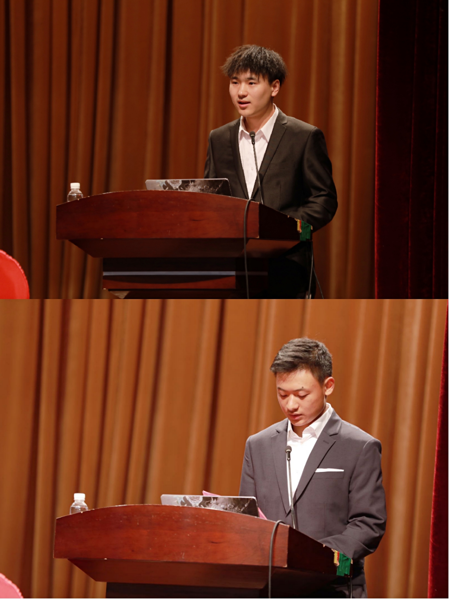 青年教师代表缪小进发言。缪小进从自身经历出发,鼓励学生积极参加课外活动,锻炼自己的交际能力、组织能力,不断提升个人职业技能,并做到尽早规划,珍惜时光,快乐充实地度过属于自己的大学时代。在校学生代表蒋守谦表示,大学是奋斗的起点,希望学弟学妹能够在汲取知识的同时兼顾校园文化生活,依据自己的兴趣爱好,真正做到把握今天。新生代表吴翔宇结合自身高考的特殊经历,强调了战胜考验的重要性,并表示新生要做到起早出发,抢得先机,拥有天下胸怀,满怀正气,找寻自己的方向。