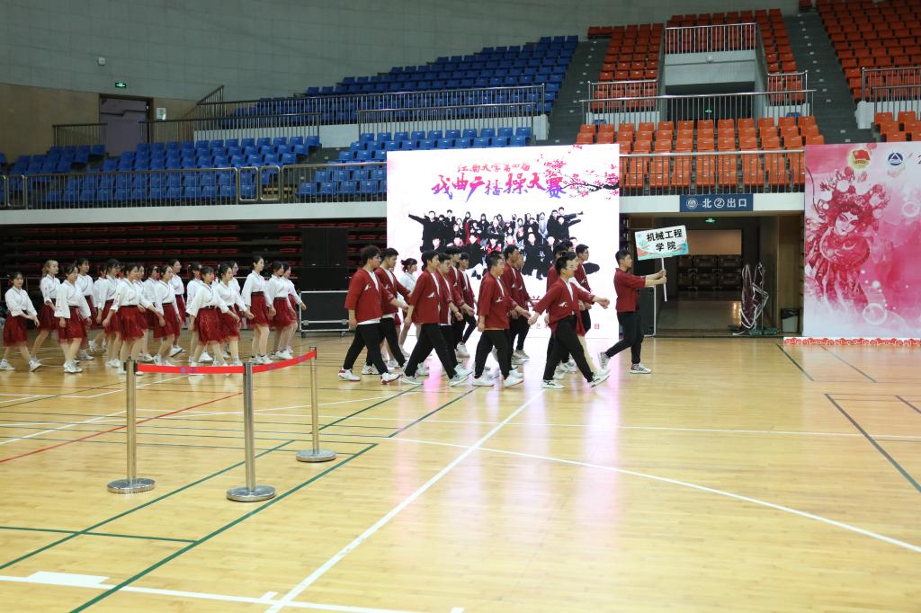 yl23455永利官网代表队是第三个上前表演的队伍,领队同学喊出“齐步走!”的口令,参演同学们整齐地走上舞台,站好队形,鞠躬致意,动作一气呵成,给评委们留下了很好的第一印象;音乐响起,表演开始,永利官网代表队面带笑容,洋溢着自信,每一位同学都很努力地做好每一个动作,不仅展现出了传统戏曲的柔美古风,也不失广播体操的青春活力,他们的飒爽舞姿为戏曲广播操做了最好的诠释;最后,同学们喊出了“机械雄风,勇攀高峰”的响亮口号,展现出了机械学子奋勇向前、勇攀高峰的决心,台下观众频频鼓掌欢呼,同学们的表演很成功。表演结束后,评委老师根据各个学院代表队的表演进行打分并决定最终排名。经过一个月的辛勤付出,机械学子在本次戏曲广播操大赛中获得了三等奖的优秀成绩。