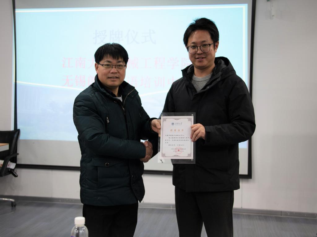 颁奖仪式过后,yl23455永利官网方书记和无锡朗阁外语培训中心吴校长进行了授牌仪式,标志着友好合作的开始和对未来发展的期望。